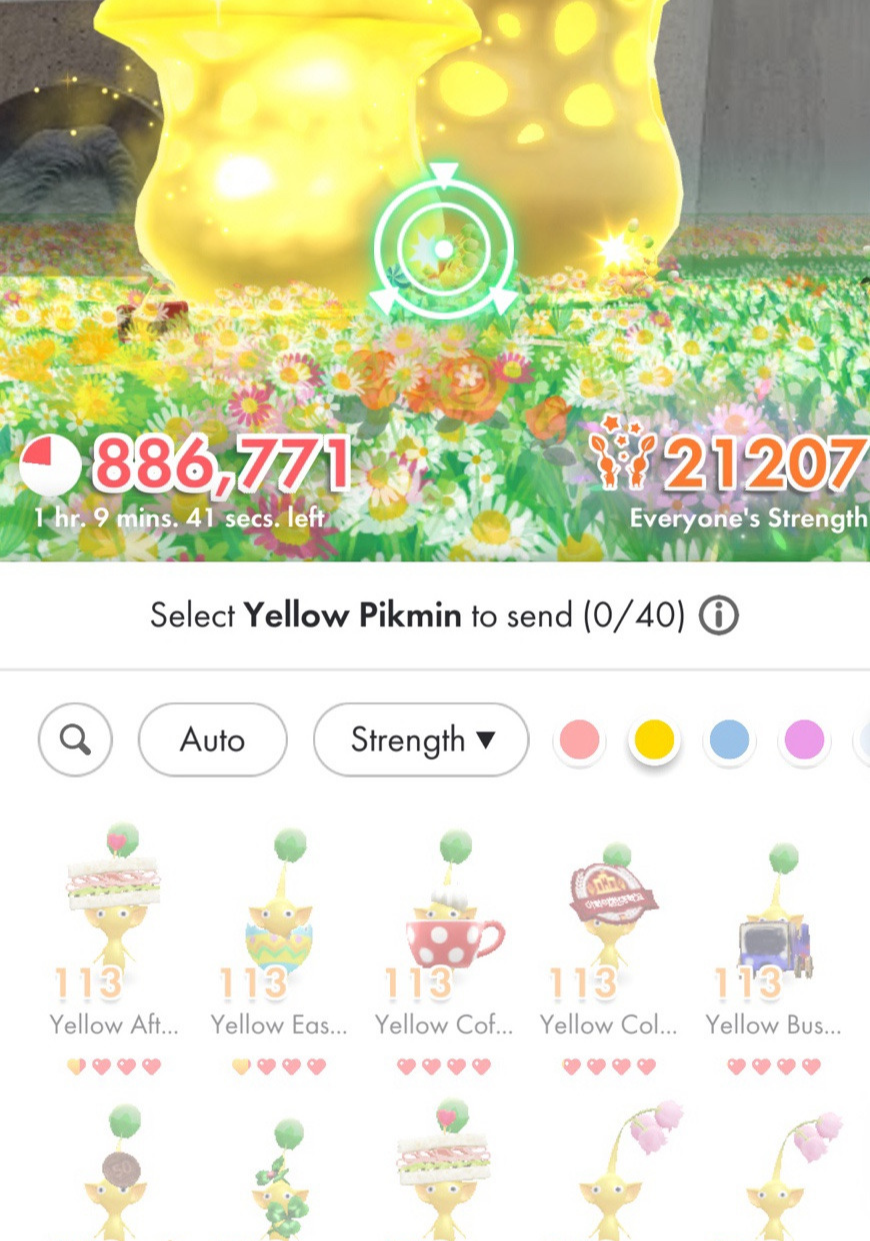<자동/힘> 으로 선택하면 빠르게 피크민을 선택할 수 있어요